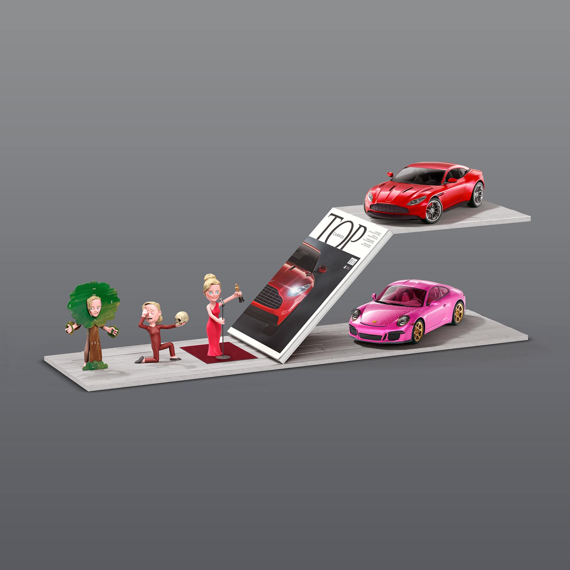 Work I did a couple of years back for Almap and Top Carros magazine! I was responsible for the characters and scenery. 🤘🤘